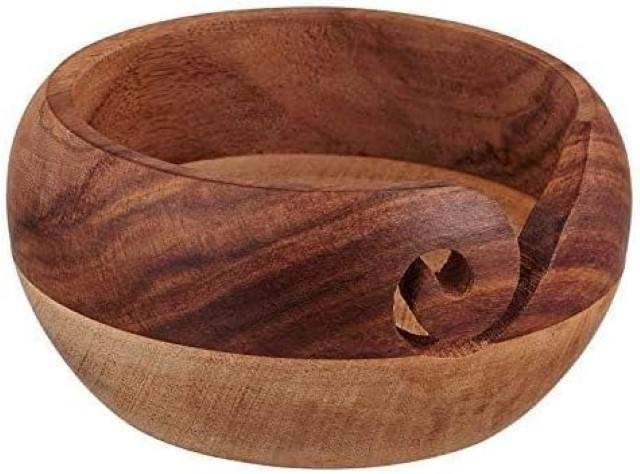 Handcrafted Wooden Yarn Bowl Knitting Crochet Holder with Swirl Cutout Chunky Yarn Storage Organizer Handmade Craft Supply