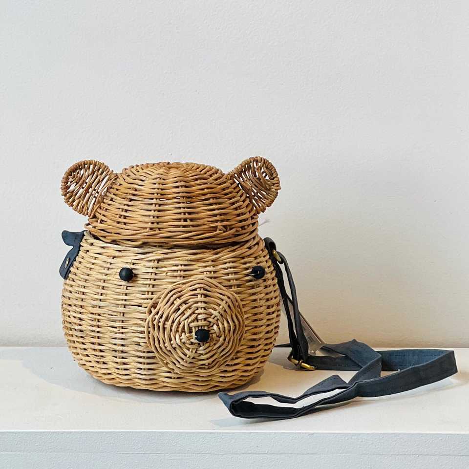 กระเป๋าหวายสำหรับเด็กทำมือลายการ์ตูนน่ารักกระเป๋าเด็กผู้หญิงกระเป๋าของเล่นรูปหมีสีน้ำตาลน่ารักขายส่งจากเวียดนาม