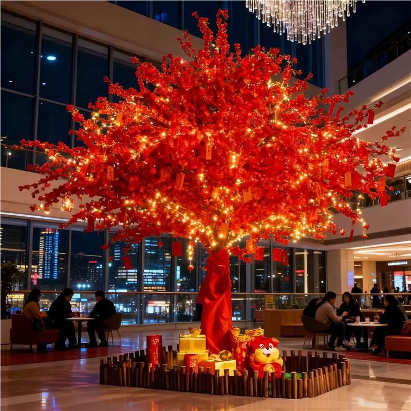 Fiberglass tree trunk+silk/plastic flower&leavesวัสดุ