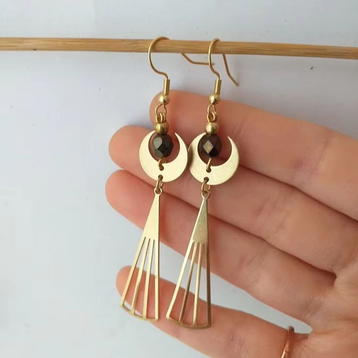 ต่างหูทองเหลืองทำมือสำหรับผู้หญิงที่มีลวดลายชาติพันธุ์และการตกแต่งแบบโบราณเหมาะสำหรับชุดเทศกาลอินเดียแบบดั้งเดิม