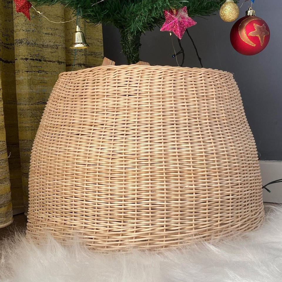 ห่วงตกแต่งต้นหวายสีน้ำตาลทำด้วยมือฝาครอบฐานสำหรับต้นคริสต์มาสอุปกรณ์วันหยุด