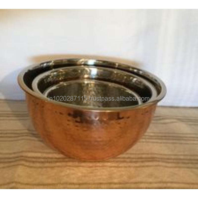 ชามเสิร์ฟอาหารทำจากทองแดงทำมือสำหรับโต๊ะอาหารแบบดั้งเดิมของอินเดียตกแต่งได้อย่างน่าดึงดูด