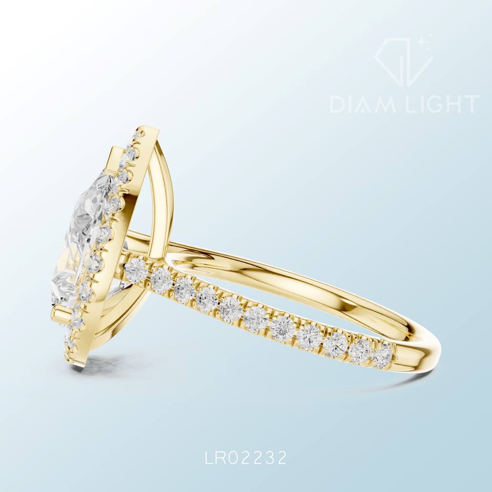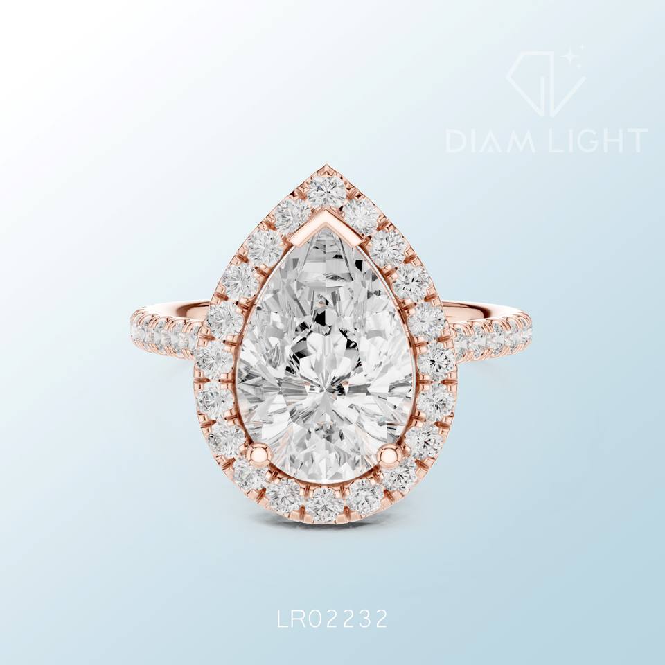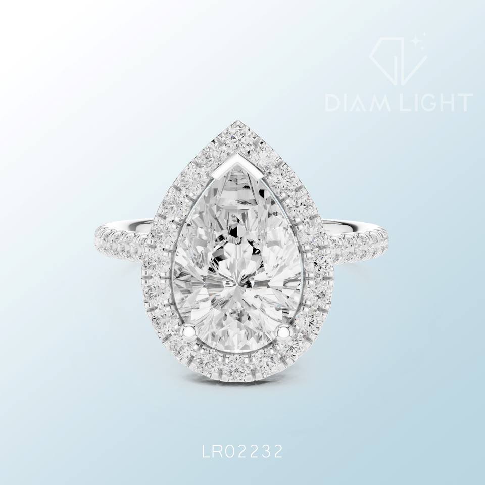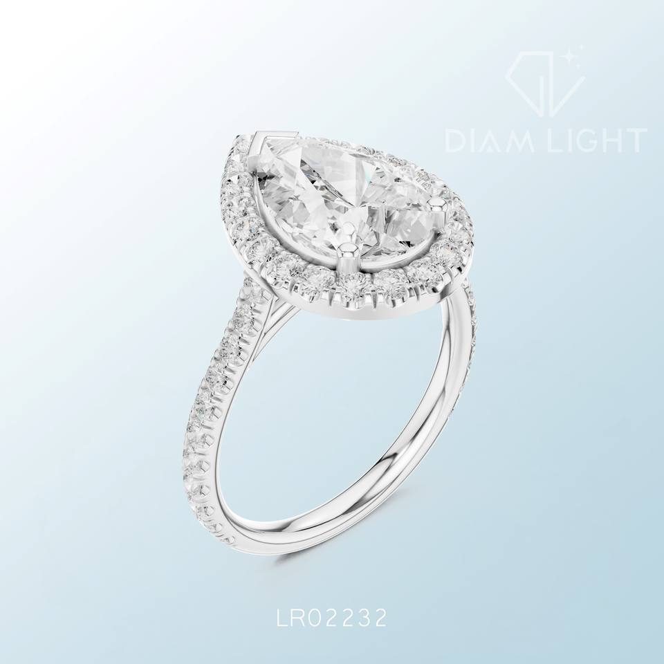 แหวนเพชรทรงลูกแพร์ดีไซน์หรูหราประณีต งานฝีมือประณีต เหมาะสำหรับงานหมั้น งานแต่งงาน และเป็นของขวัญสุดพิเศษ ประดับด้วยเพชรที่ได้รับการรับรองจาก IGI