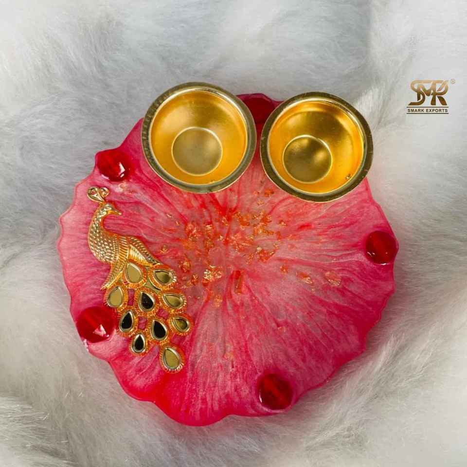 ถาดบูชาทำมือจากเรซิ่นอีพ็อกซี่รักษ์โลก รุ่นพรีเมียม สำหรับตกแต่งบูชา ออกแบบสำหรับเทศกาลดีวาลี ใช้ในบ้านหรือมณฑิษฐ์ประจำวัน