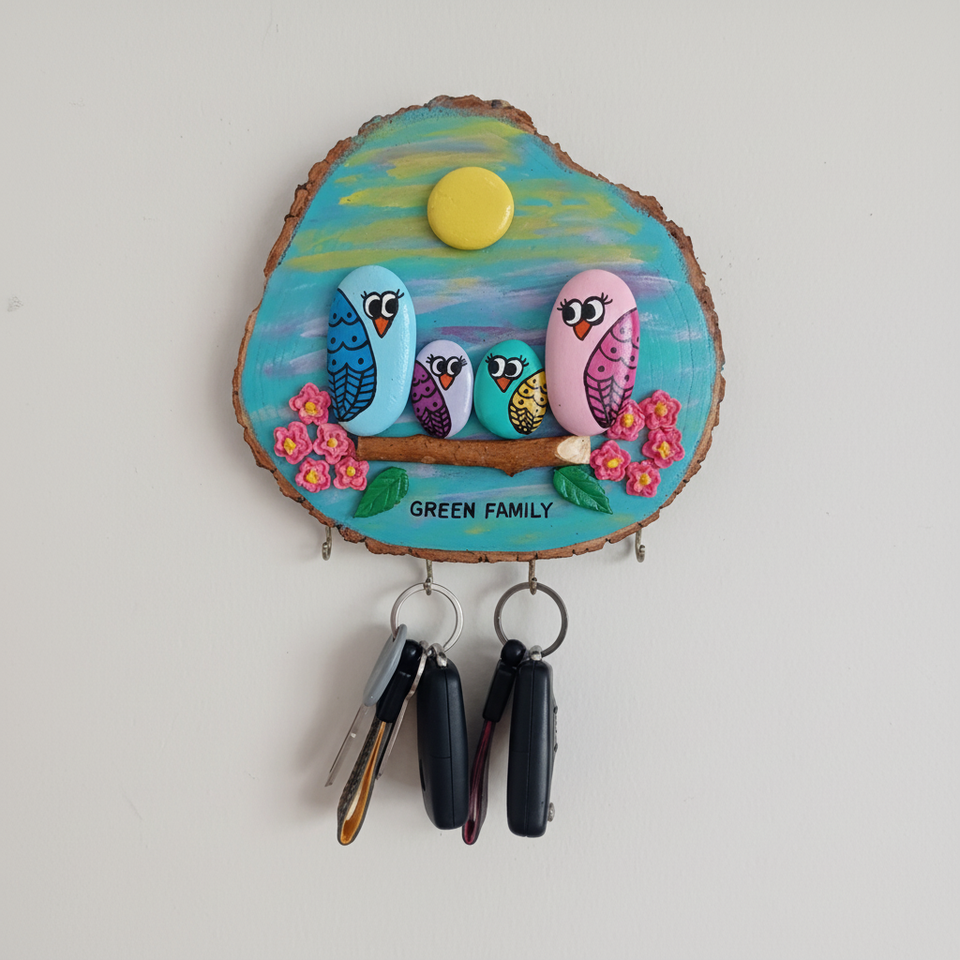 ศิลปะแนวร็อคของครอบครัวนกฮูกที่ทำด้วยมือบนแผ่นไม้มอบเสน่ห์ที่แปลกใหม่และมีสีสันมีจำหน่ายในราคาขายส่ง ..