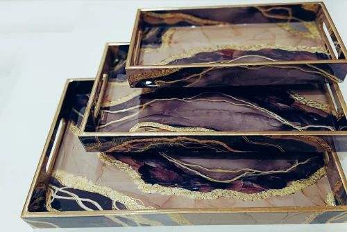 ชุดถาดเสิร์ฟเรซิ่น 3 ชั้น พร้อมจานรองแก้ว งานแฮนด์เมด คุณภาพสูง ไม้สั่งทำพิเศษ สำหรับบ้าน ร้านอาหาร อาหารอินเดีย และโอกาสต่างๆ