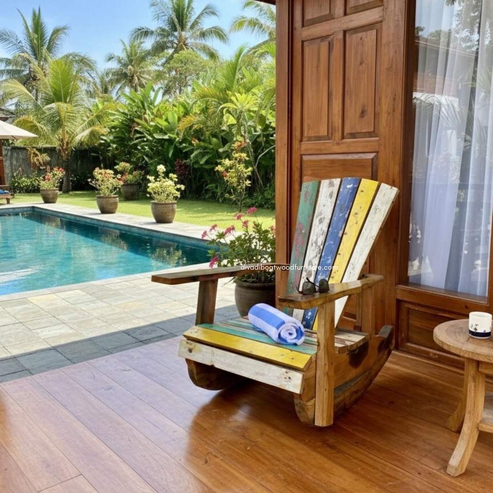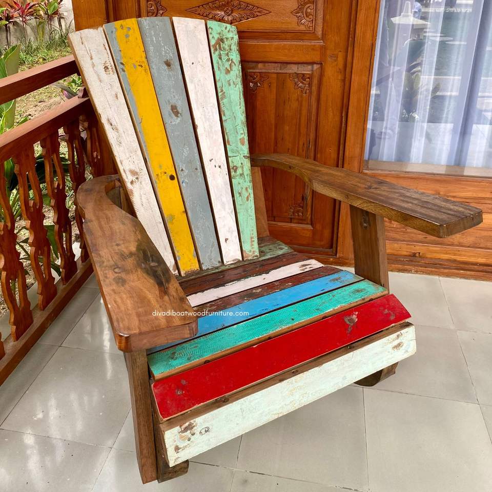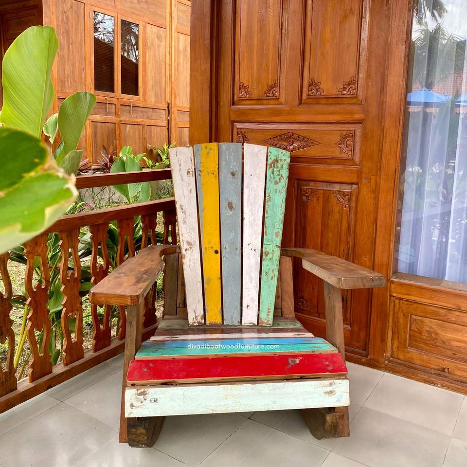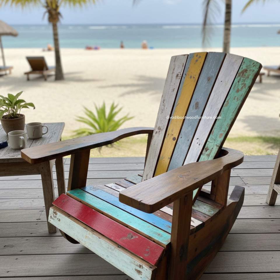 เก้าอี้โยกทำมือจากไม้เรือที่รีไซเคิล เหมาะสำหรับใช้ทั้งภายในและภายนอกอาคาร ผสมผสานความมีเสน่ห์แบบชนบท