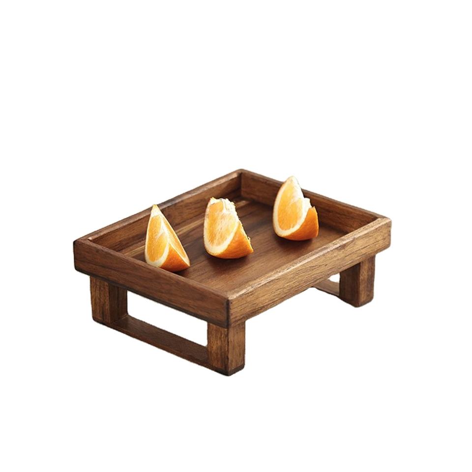 ถาดไม้สี่เหลี่ยมทำมือ แท่นวางยกสูงสำหรับเสิร์ฟผลไม้ ขนม ตกแต่ง จัดวางบนเคาน์เตอร์ครัว สไตล์มินิมอล