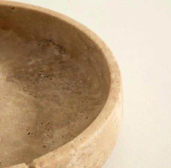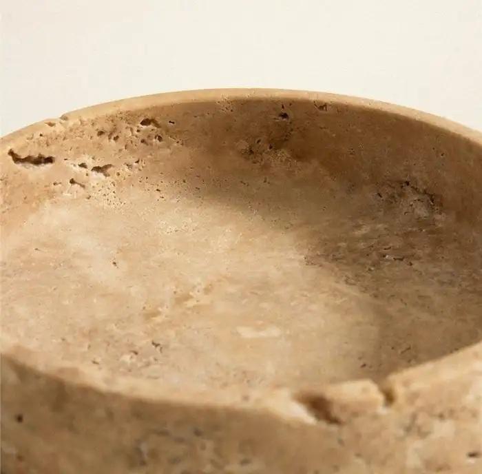 ชามตกแต่งทำจากหินทราเวอร์ทีน งานฝีมือ พร้อมพื้นผิวธรรมชาติ เหมาะสำหรับตกแต่งสไตล์โมเดิร์นและจัดวางแบบออร์แกนิก