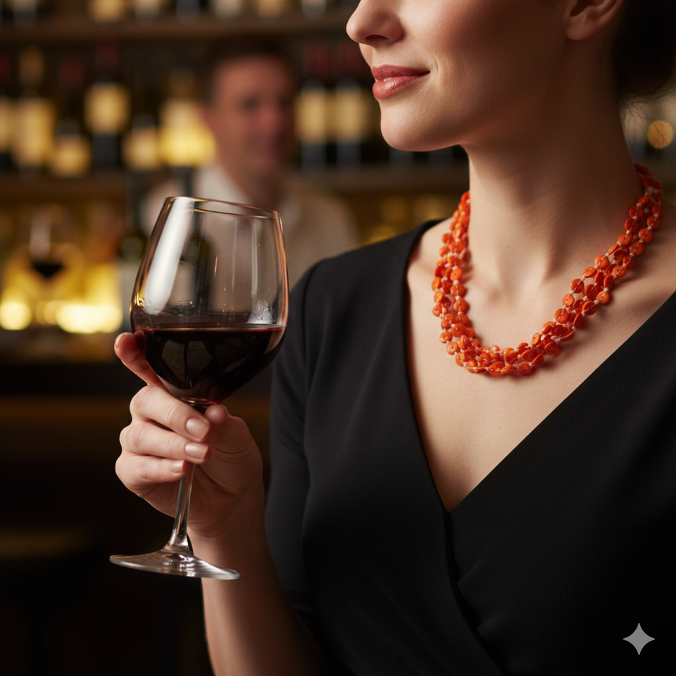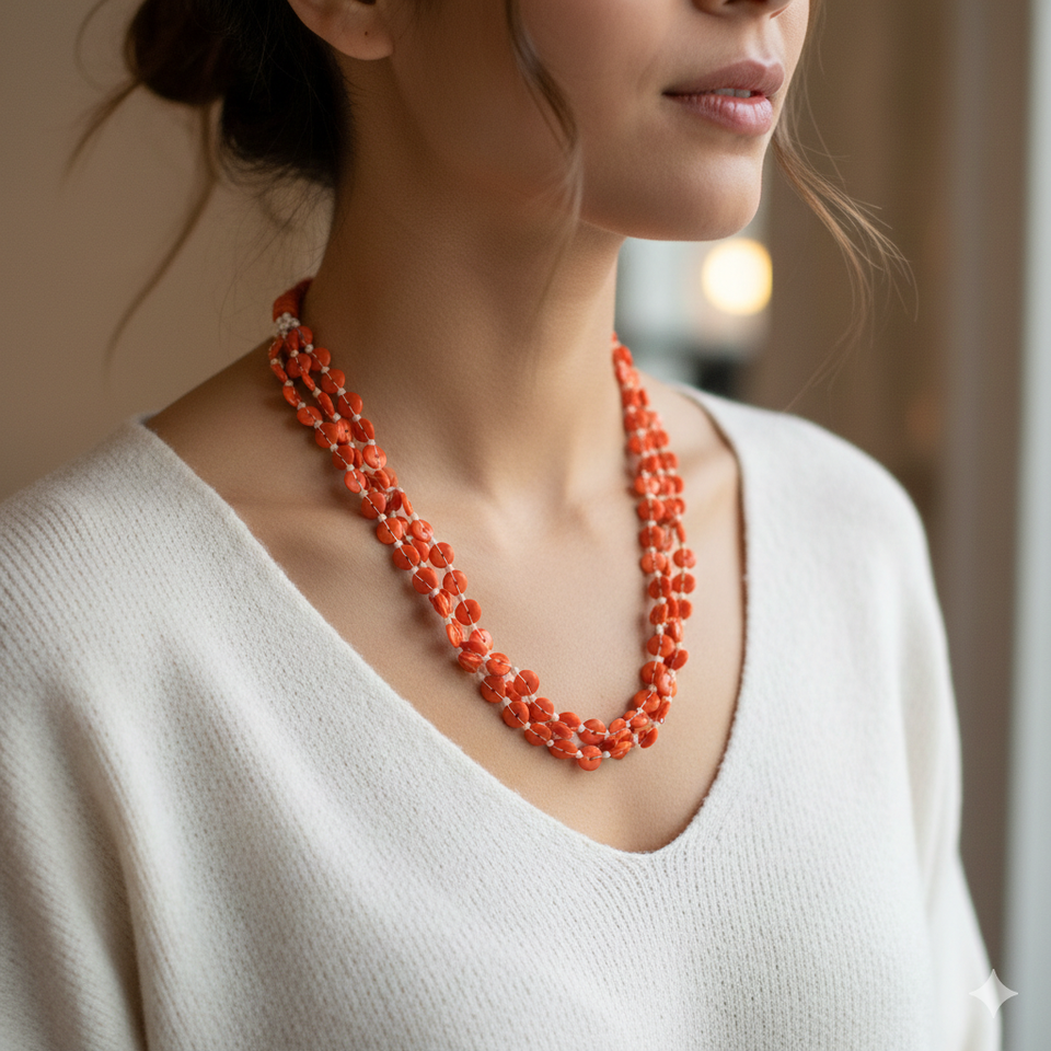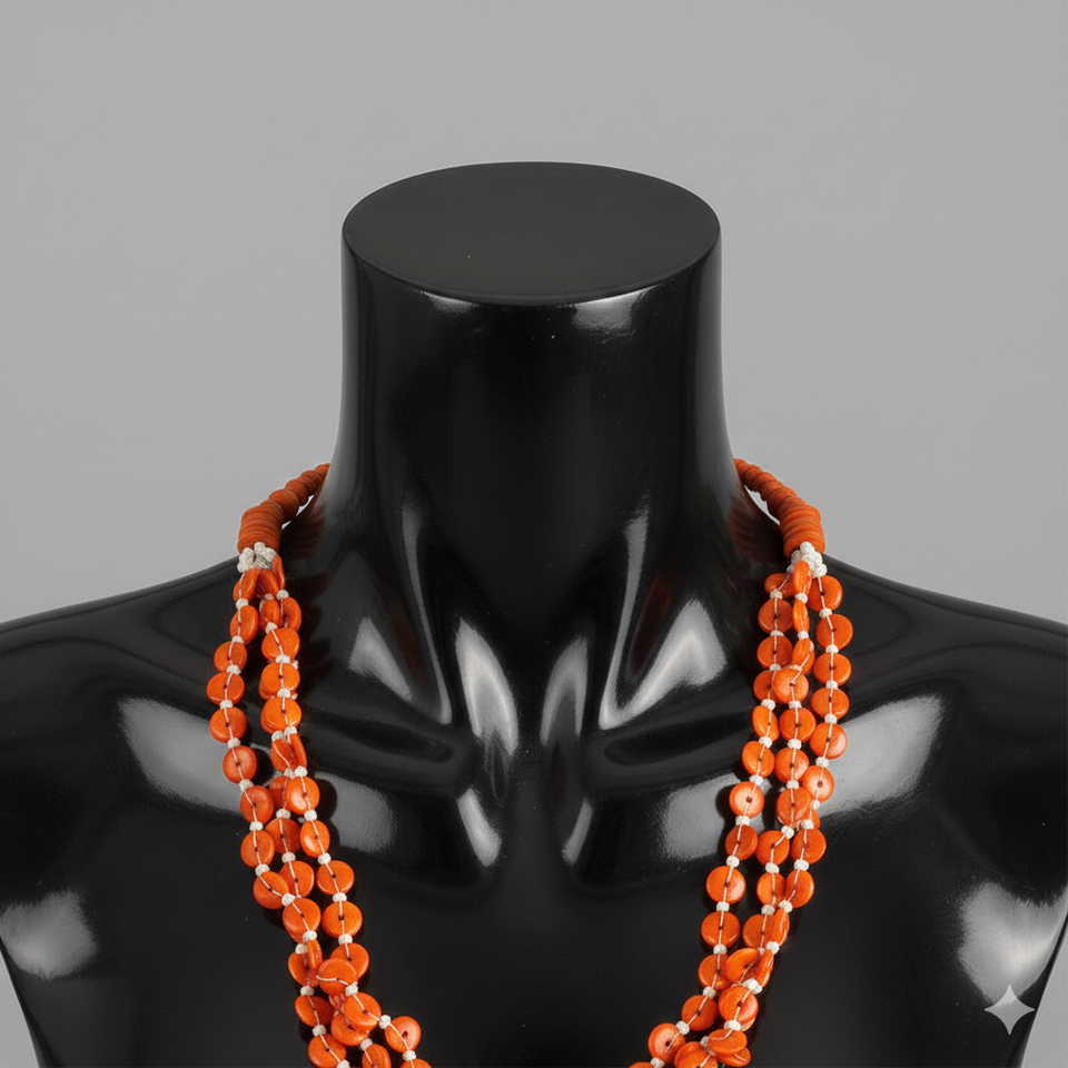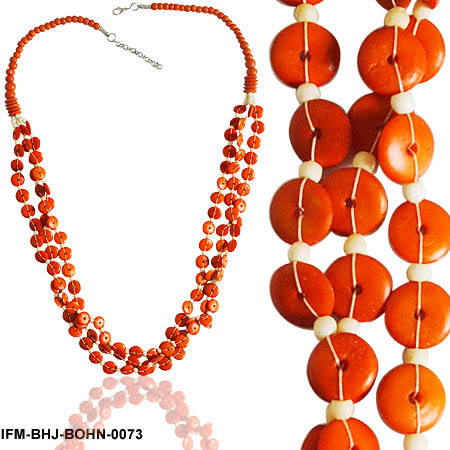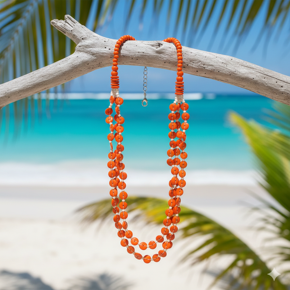 สร้อยคอประดับลูกปัดกระดูกทรงกลมสีส้มสดใส ทำด้วยมือ พร้อมดีเทลสีขาว และตัวล็อคแบบก้ามปูที่ปรับได้