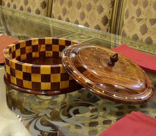 Chapati dabba ทำจากไม้ทำด้วยมือเหมาะสำหรับห้องครัวอินเดียที่ให้คุณค่ากับการออกแบบแบบดั้งเดิม