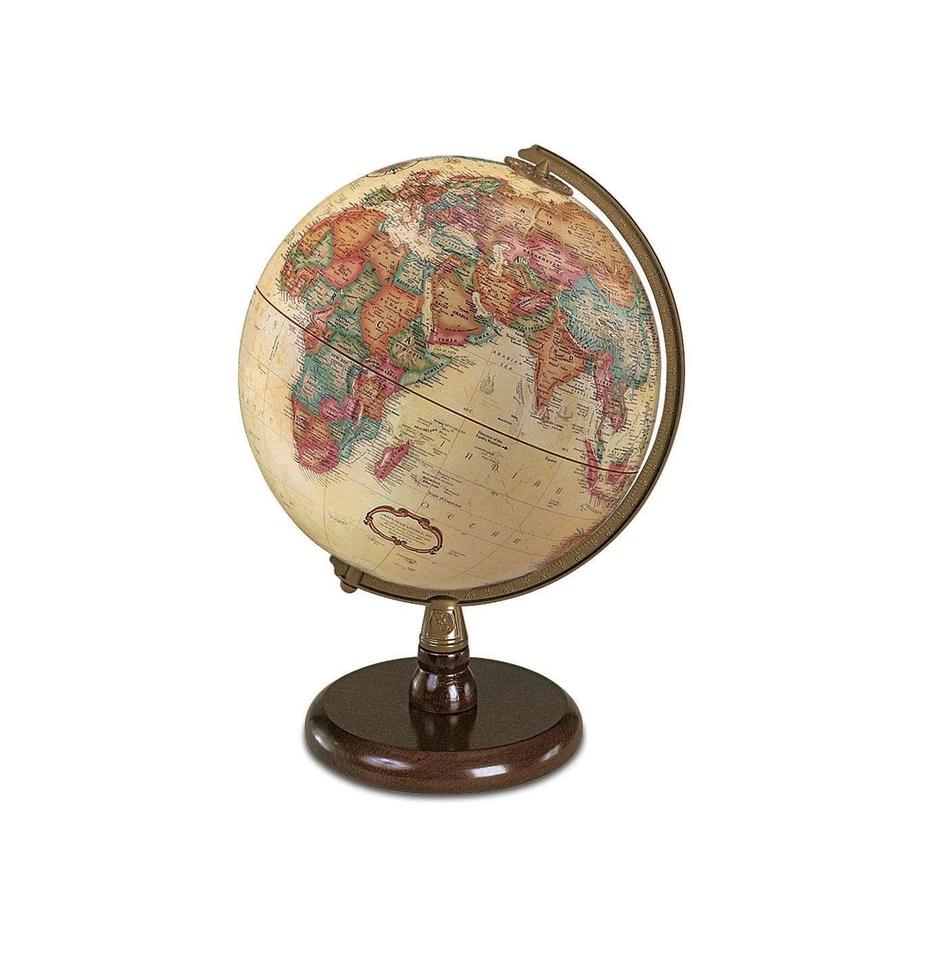 Handcrafted wooden globe with antique map design perfect for home office decor educational displays