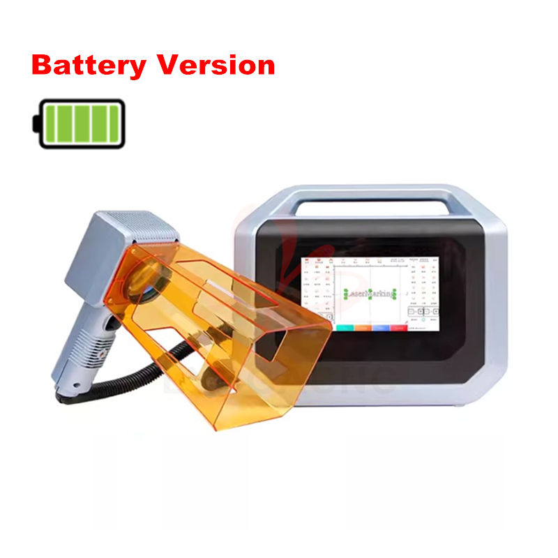 เครื่องเลเซอร์ไฟเบอร์แบบมือถือ 50 วัตต์ เครื่องเลเซอร์มาร์กกิ้ง 30 วัตต์ แบบเสียบปลั๊ก/ไร้สาย แบตเตอรี่ลิเธียม สำหรับเครื่องมาร์กโลหะและเครื่องประดับ เครื่องแกะสลักเหล็ก 20 วัตต์