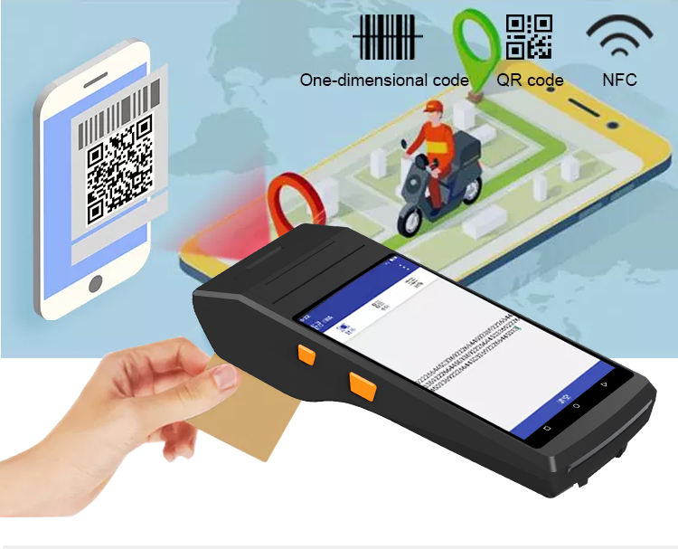 แอนดรอยด์แบบมือถือ PDA เครื่องสแกนฉลาก58มม. ในตัวเครื่องสแกนบาร์โค้ด1D 4G WiFi/2D สำหรับการสแกนล็อตโต้แบบไร้สาย