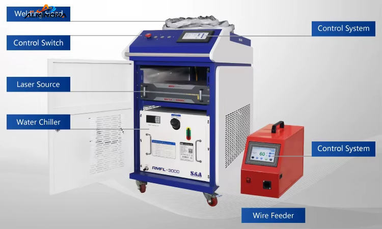 เครื่องเชื่อมเลเซอร์แบบมือถือ เครื่องทำความสะอาด เครื่องตัด เครื่องเชื่อมเลเซอร์อุตสาหกรรม ระบบระบายความร้อนด้วยอากาศ สำหรับโลหะ 1500W 2000W 3000W