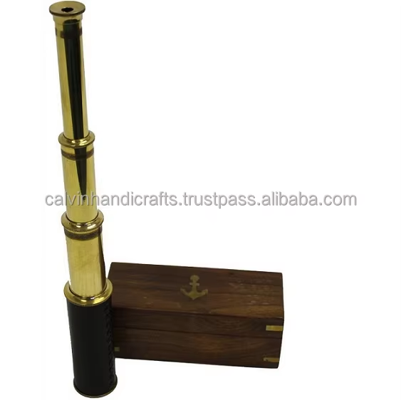 กล่องกล้องโทรทรรศน์ทองเหลืองพร้อมเลนส์แก้วทำจากทองเหลืองและหนังที่ทนทานแบบถือด้วยมือ