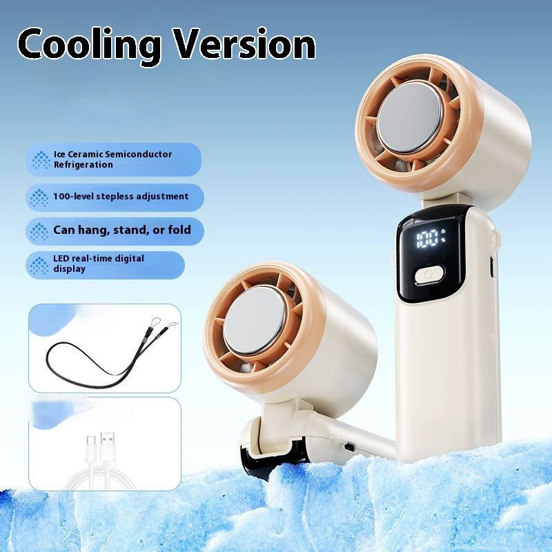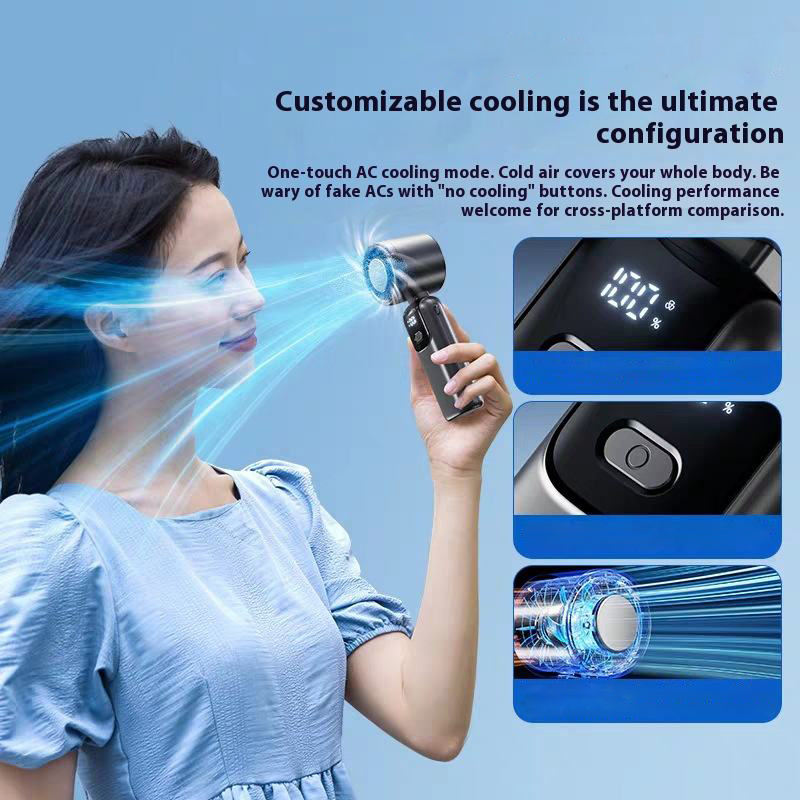 พัดลมพกพาขนาดเล็กแบบมือถือ USB เงียบ กำลังสูง พร้อมหน้าจอดิจิตอล แบตเตอรี่คู่ ใช้งานได้ยาวนาน