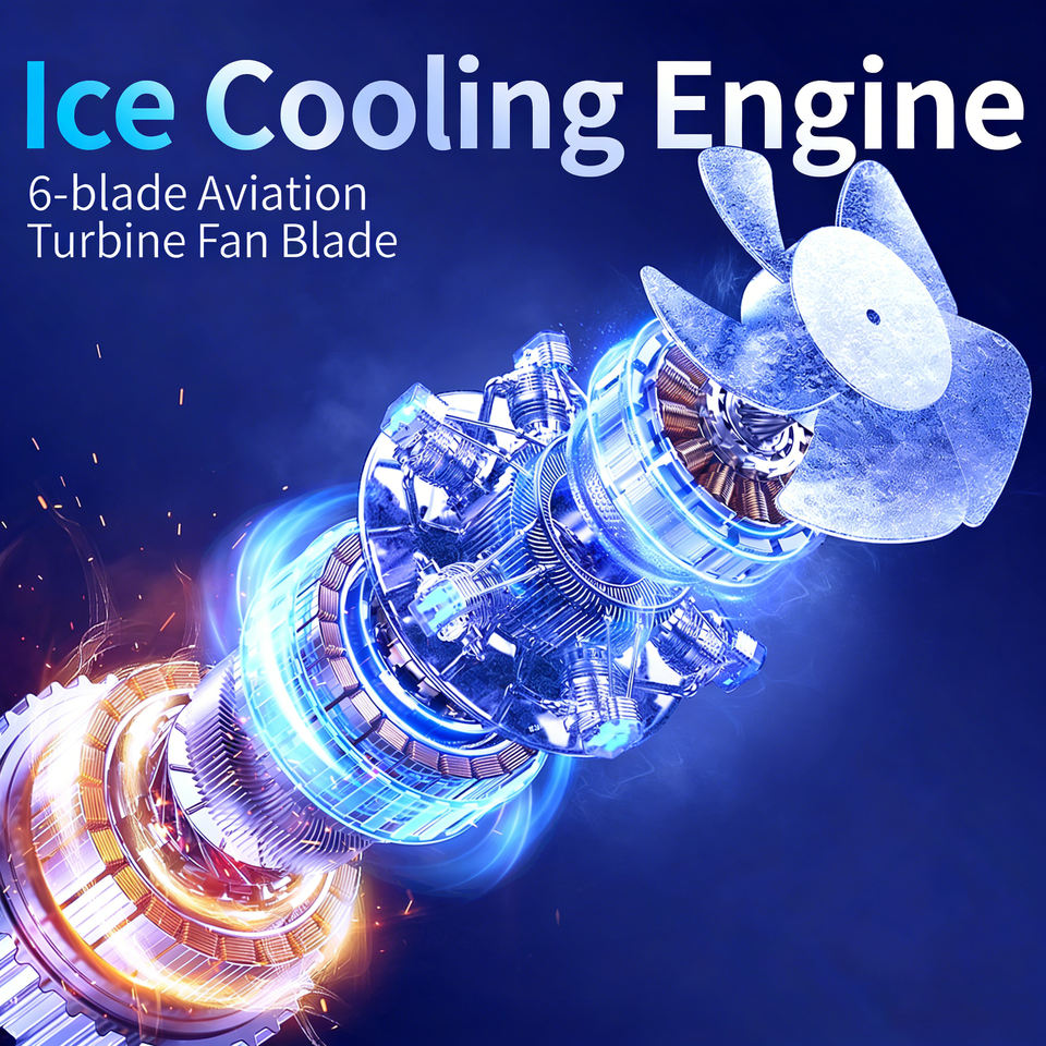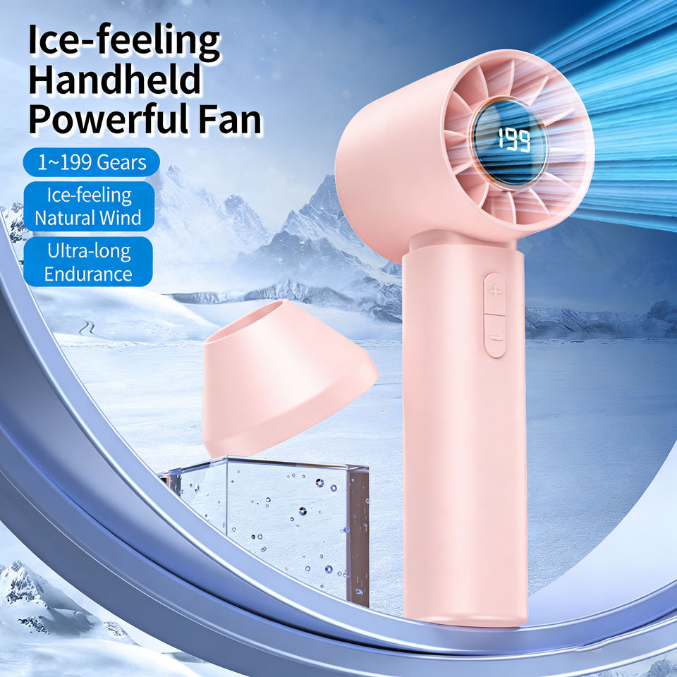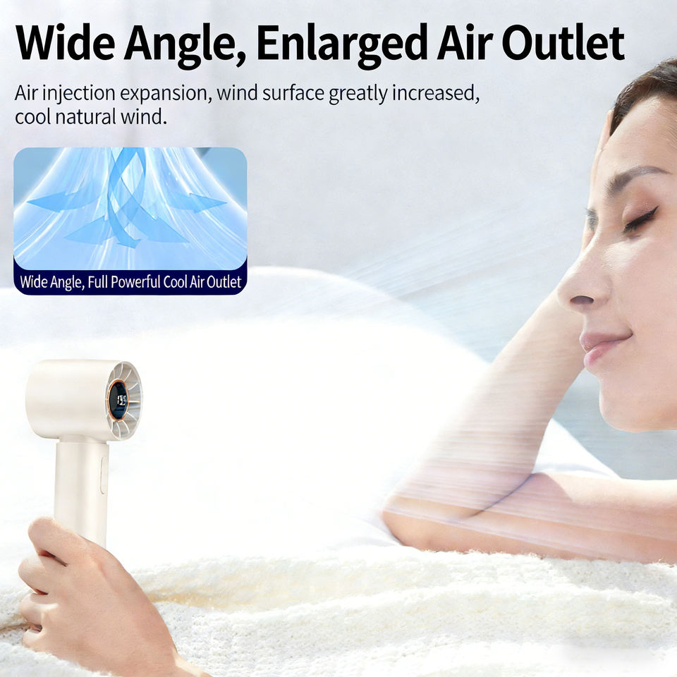 พัดลมมือถือขนาดเล็กพร้อมหน้าจอดิจิตอล 199 ระดับความเร็ว พัดลมเทอร์ไบน์แบบพกพาพลังสูงแบบชาร์จไฟได้สำหรับแขวนเอว
