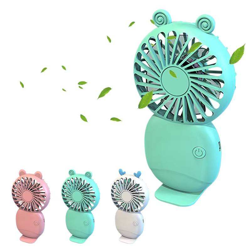 พัดลมพกพาขนาดเล็กแบบมือถือตั้งโต๊ะได้ ชาร์จผ่าน USB พร้อมขาตั้ง
