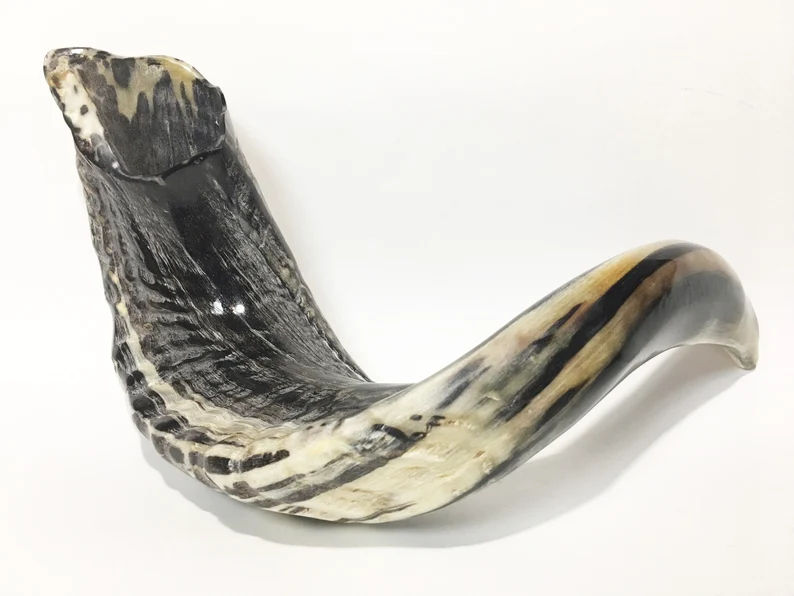 แตรเขาแกะขนาดใหญ่ทำมือ พร้อมหินอาเกต เสียงลึกเป็นธรรมชาติ สไตล์ศาสนา ผลิตด้วยมือในอินเดีย