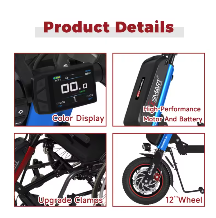 อุปกรณ์เสริมสำหรับรถเข็นคนพิการพร้อมยางขนาด 16 นิ้ว มอเตอร์ 48V 1000W แบตเตอรี่ลิเธียม 20A ความเร็ว 40 กม./ชม. และระยะทาง 80/100 กม.