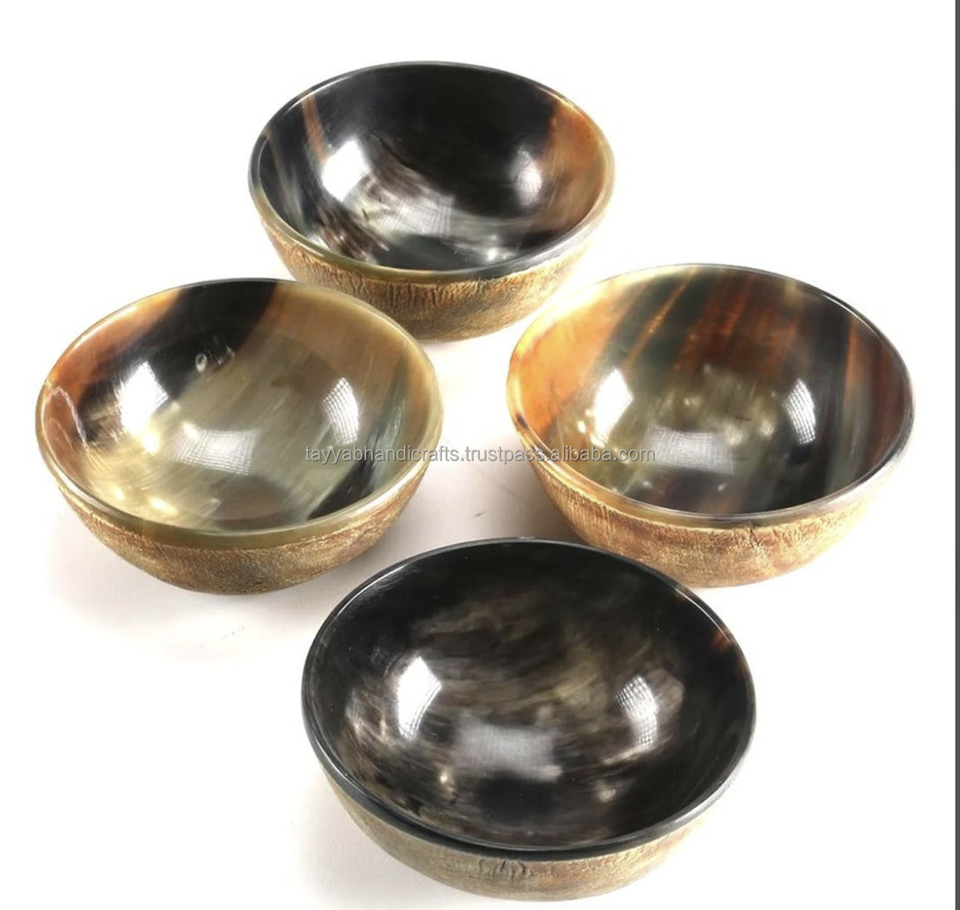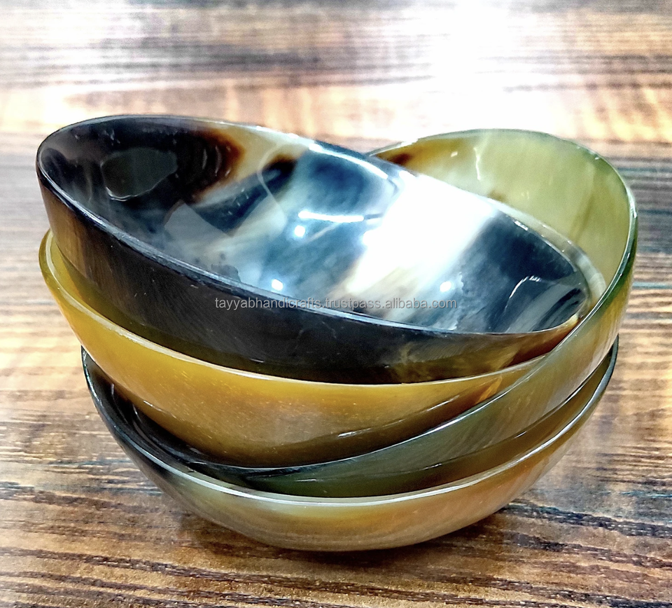 Handicraft Buffalo Horn Bowls Use Salad Cow and Ox Horn Bowl Product of Natural Black for Dinnerware Use From India