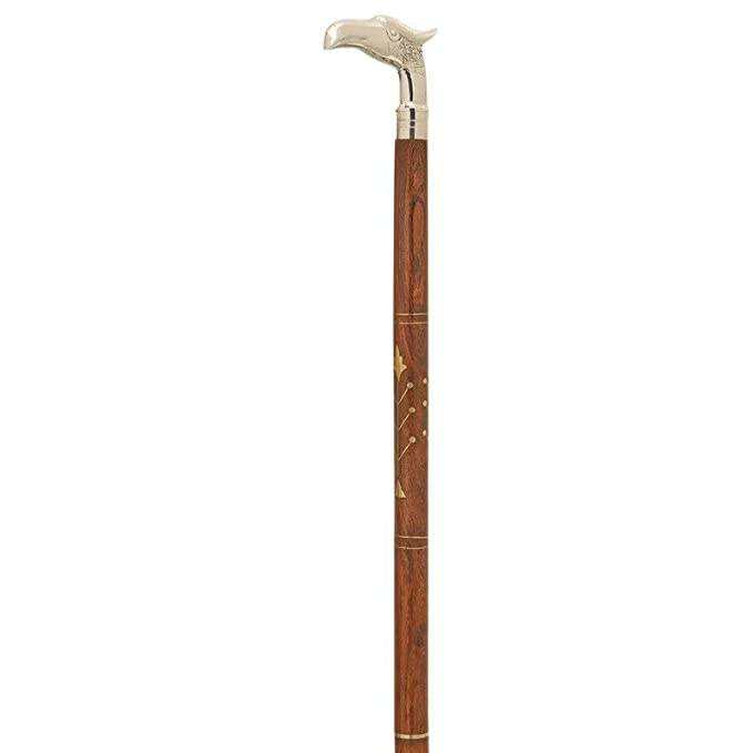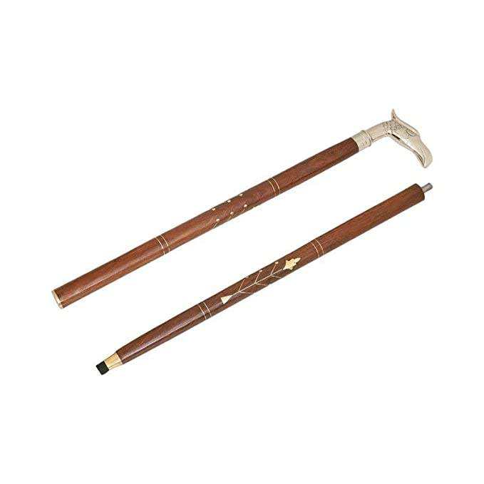 Handicraft Designer Nautical Vintage Victorian Brass Eagle Head Handle Fold Wooden Walking Stick Cane 36"