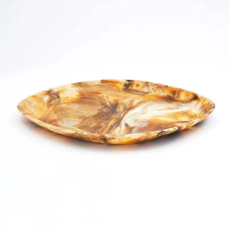 ชามและจานเสิร์ฟเรซิ่นรักษ์โลก งานฝีมือ ปลอดภัยสำหรับเครื่องล้างจาน พร้อมใช้งานสำหรับงานปาร์ตี้ ดีไซน์ศิลปะสมัยใหม่ปรับแต่งได้ สำหรับใช้ในบ้าน