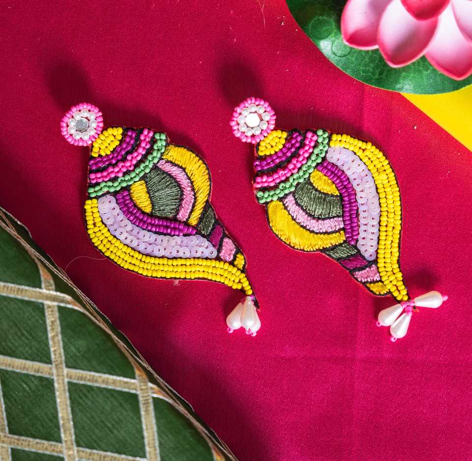 ต่างหูลูกปัดปักสำหรับผู้หญิงสินค้าหัตถกรรมเครื่องประดับสำหรับปาร์ตี้เทศกาลต่างหูลูกปัดผลิตในอินเดีย