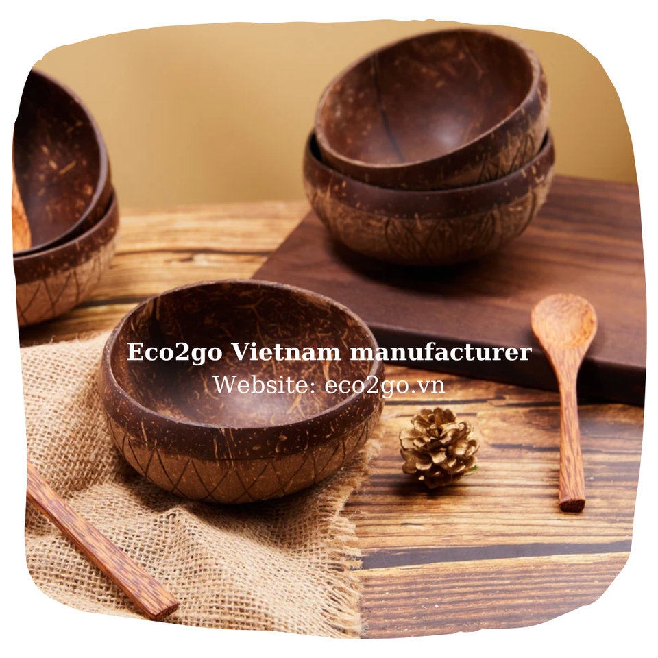 หัตถกรรมและยั่งยืนกะลามะพร้าวชามฟรีเลเซอร์โลโก้เวียดนามสำหรับใช้ที่ห้องครัวทำโดย Eco2go เวียดนาม