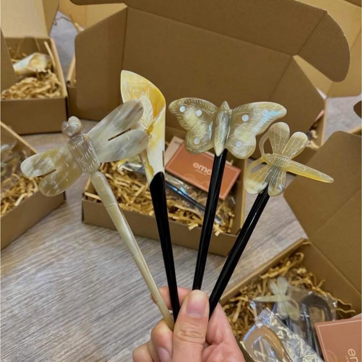 Handicraft hair stick, beautiful horn hair stick, natural, brooch, Vietnam handmade origin, custom.