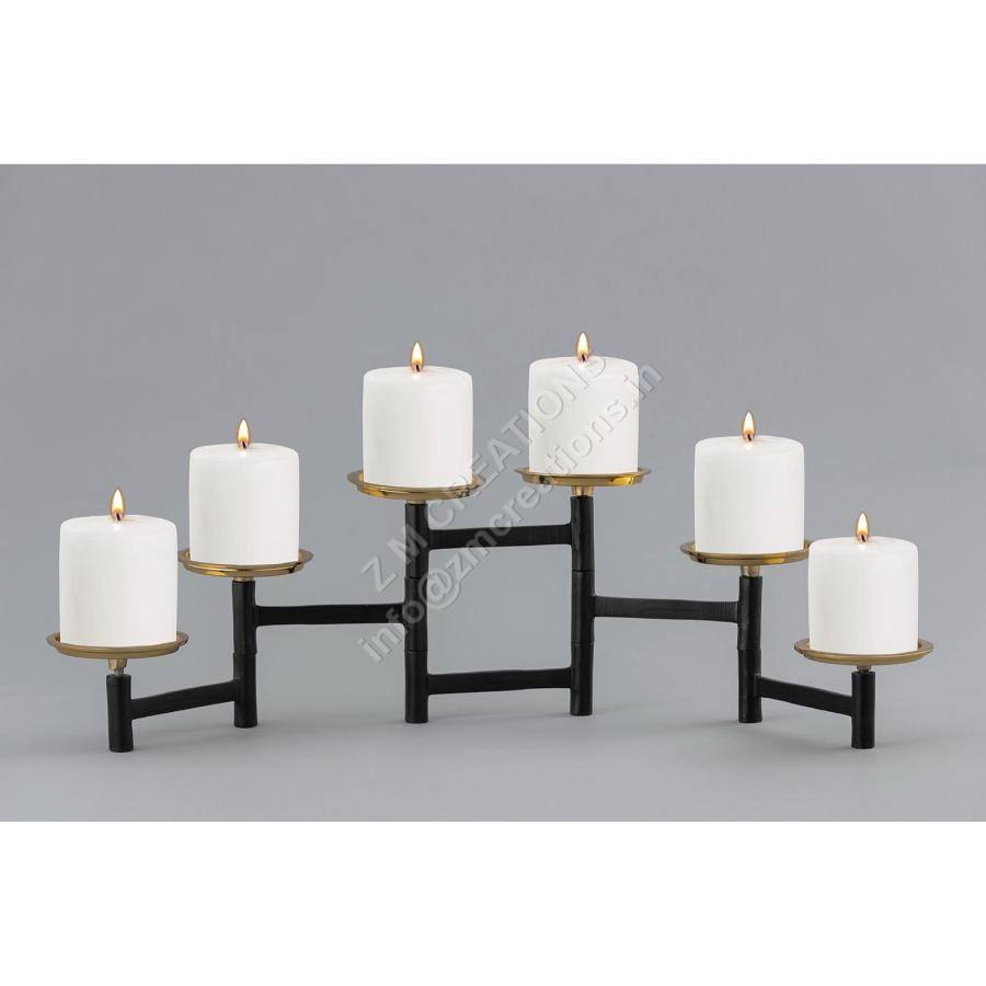 เชิงเทียนโลหะสีทองดีไซน์ใหม่ล่าสุด 6 แขน พร้อมเสาสีดำ สไตล์โมเดิร์น สำหรับคริสต์มาสและอีสเตอร์