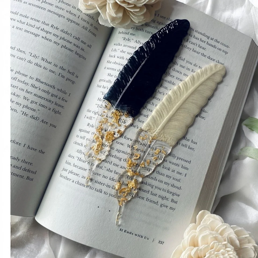 ที่คั่นหนังสือเรซิ่นลายใบไม้ สีดำขาว ของขวัญที่ดีที่สุดสำหรับเด็กนักเรียน ที่คั่นหน้าหนังสือ ราคาประหยัด