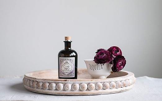 ถาดไม้ทรงกลมสำหรับใส่ลูกปัด | ถาดเสิร์ฟตกแต่งทำมือ ถาดงานแต่งงานและงานเลี้ยงสไตล์เรสติก ถาดโชว์และถาดเก็บของ