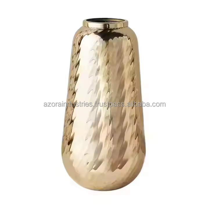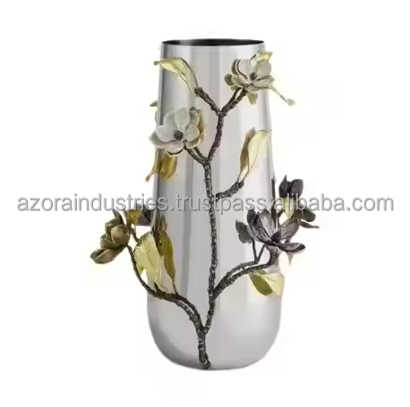 แจกันดอกไม้เหล็กงานหัตถกรรมดอกไม้บานสีทองและสไตล์การตกแต่งภายในชายฝั่งโดยอุตสาหกรรม azora