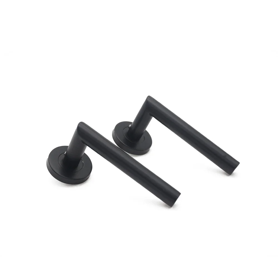 มือจับประตูสแตนเลส 304 ป้องกันการโจรกรรม ใช้กุญแจเปิด-ปิด แบบท่อโปร่ง สีดำด้านเคลือบสเปรย์ ฝาครอบแบบแยกส่วน มุมฉาก