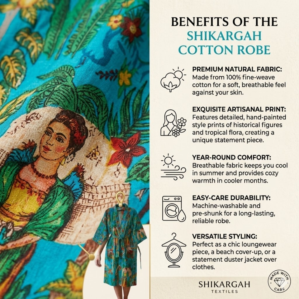 ชุดคลุมกิโมโนผ้าฝ้ายทอมือสำหรับผู้หญิง ลายดอกไม้ คอวี ยาว มีเข็มขัด ชุดคลุมอาบน้ำ ชุดนอน มีกระเป๋า
