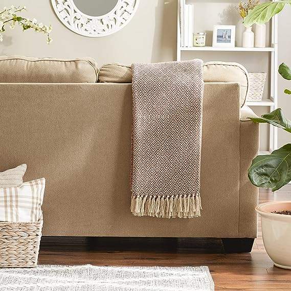 ผ้าห่มผ้าฝ้ายทอลายบั้งทำมือ50X60ใช้เป็นของตกแต่ง