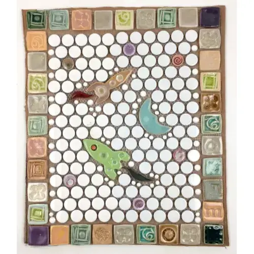 1/4ทำด้วยมือ "แผ่นกระเบื้องโมเสคหนา11.5" X 14 "ติดตั้งบนตาข่ายสำหรับกันน้ำมันกระเด็น