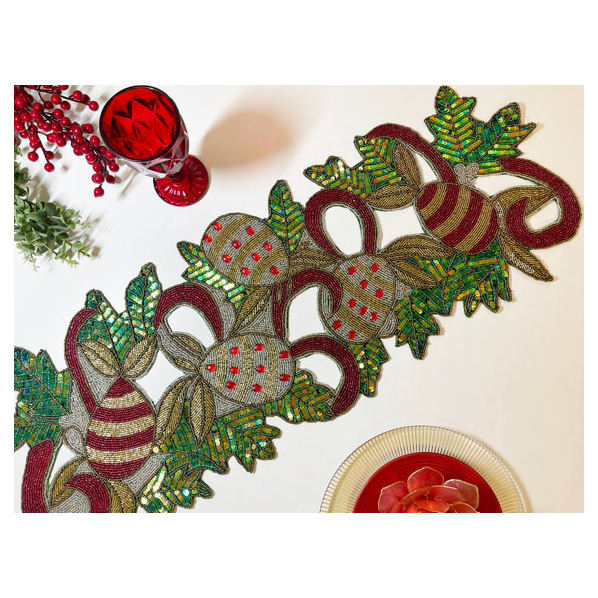 ผ้าปูโต๊ะปักลายดอกไม้ลูกปัด100% งานแฮนด์เมดสำหรับใช้ในบ้านและงานแต่งงานสำหรับใช้ในสำนักงาน