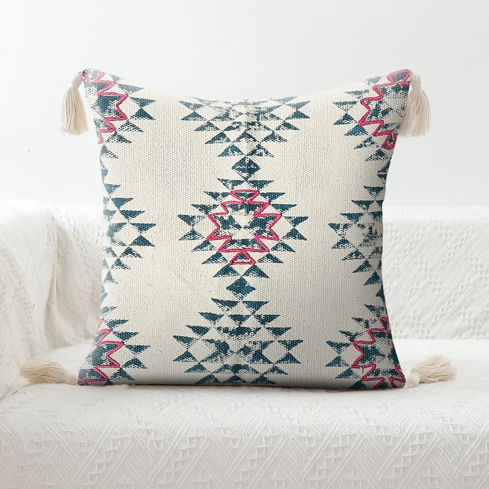 ปลอกหมอนอิงปักทำด้วยมือทำจากผ้าฝ้าย100% ปลอกหมอนตกแต่งบ้านสมัยใหม่หมอนทรงเรขาคณิตดีไซน์สามเหลี่ยมที่สวยงามคุณสมบัติใช้แล้วทิ้ง