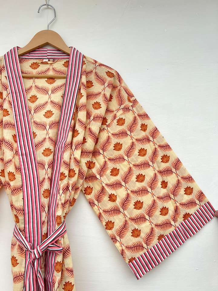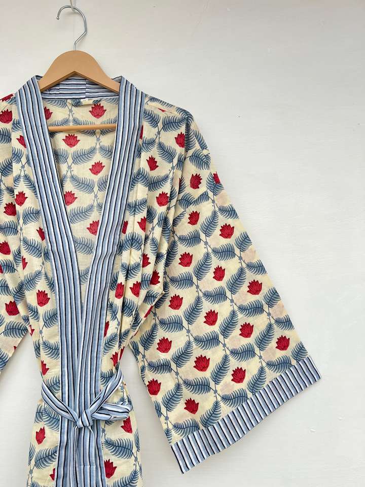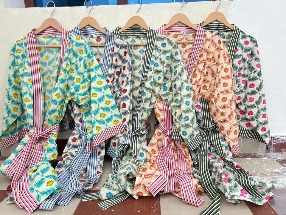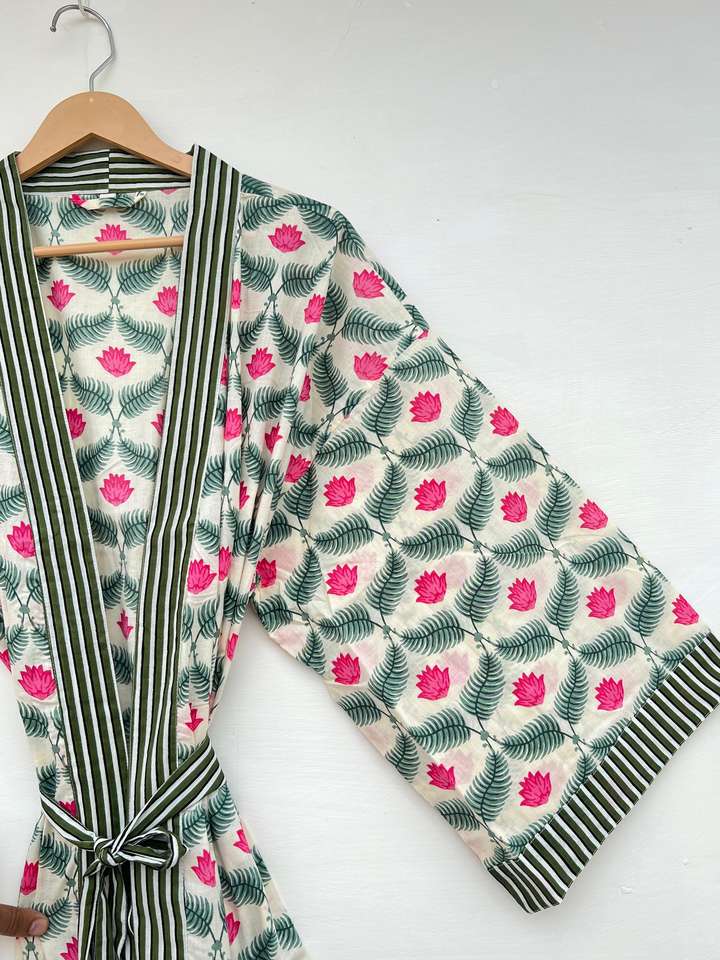 เสื้อคลุมกิโมโนผ้าฝ้ายทำมือ100% เสื้อคลุมอาบน้ำพิมพ์ลายดอกไม้และชุดราตรีชุดนอนฤดูร้อนของขวัญสำหรับเพื่อนเจ้าสาวมีหนึ่งขนาดเหมาะกับทุกคน