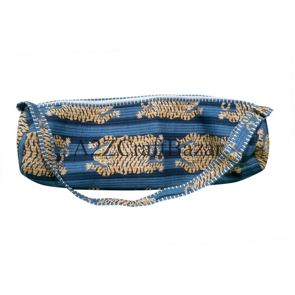 กระเป๋าใส่เสื่อโยคะทำมือ 100% ผ้าฝ้าย - กระเป๋าสะพายไหล่สำหรับออกกำลังกายและโยคะ ดีไซน์ลายสัตว์เสือ พิมพ์ลายบล็อก สไตล์หรูหรา