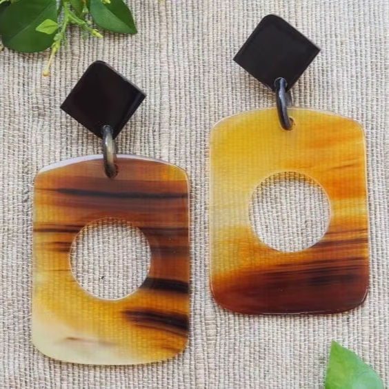 100% แฮนด์เมดต่างหูปล่อยเขาควายควายธรรมชาติพร้อมไข่มุกดีไซน์ตามสั่ง