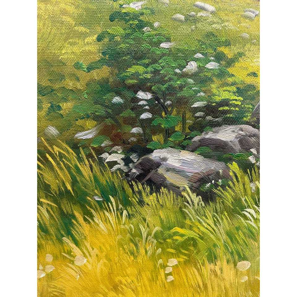 ภาพวาดสีน้ำมันทำมือ 100% ภาพวิวทิวทัศน์คลาสสิก ทุ่งหญ้าในฤดูใบไม้ผลิ ขนาด 23.5x35.5 นิ้ว สำหรับตกแต่งบ้าน