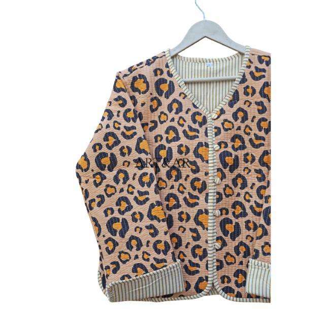 เสื้อแจ็คเก็ตผ้าฝ้ายออร์แกนิค 100% ลายดอกไม้และลายทาง พิมพ์ลายสองด้าน เป็นมิตรกับสิ่งแวดล้อม ระบายอากาศได้ดี ติดกระดุม สำหรับผู้หญิง สไตล์ลำลอง
