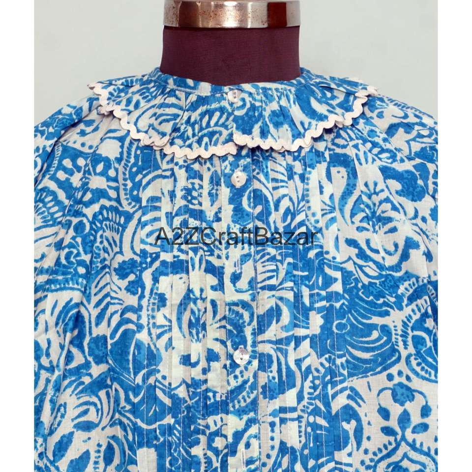 Handmade 100% Pure Cotton Indian Women's Boat Neck Long Sleeve Floral Block Printed Eco-Friendly Casual Summer Blouse