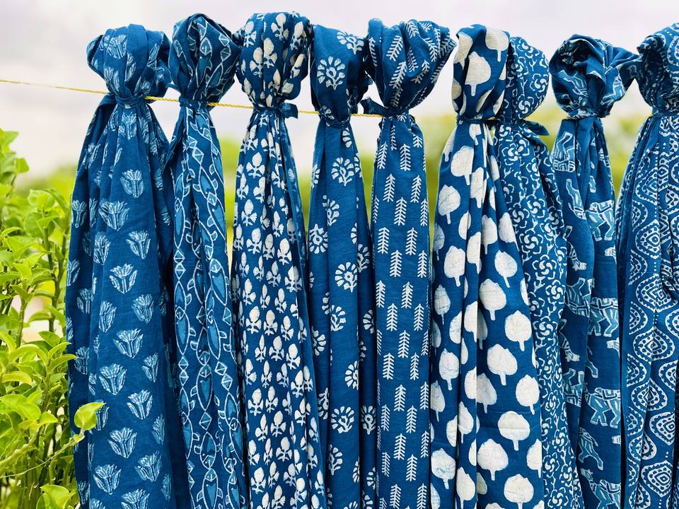 ชุดว่ายน้ำบิกินี่ผ้าฝ้ายแท้ 100% ทำมือ พิมพ์ลายดอกไม้สีครามแบบบล็อกพิมพ์ บริการ OEM เป็นมิตรกับสิ่งแวดล้อม ระบายอากาศได้ดี เหมาะสำหรับชายหาด