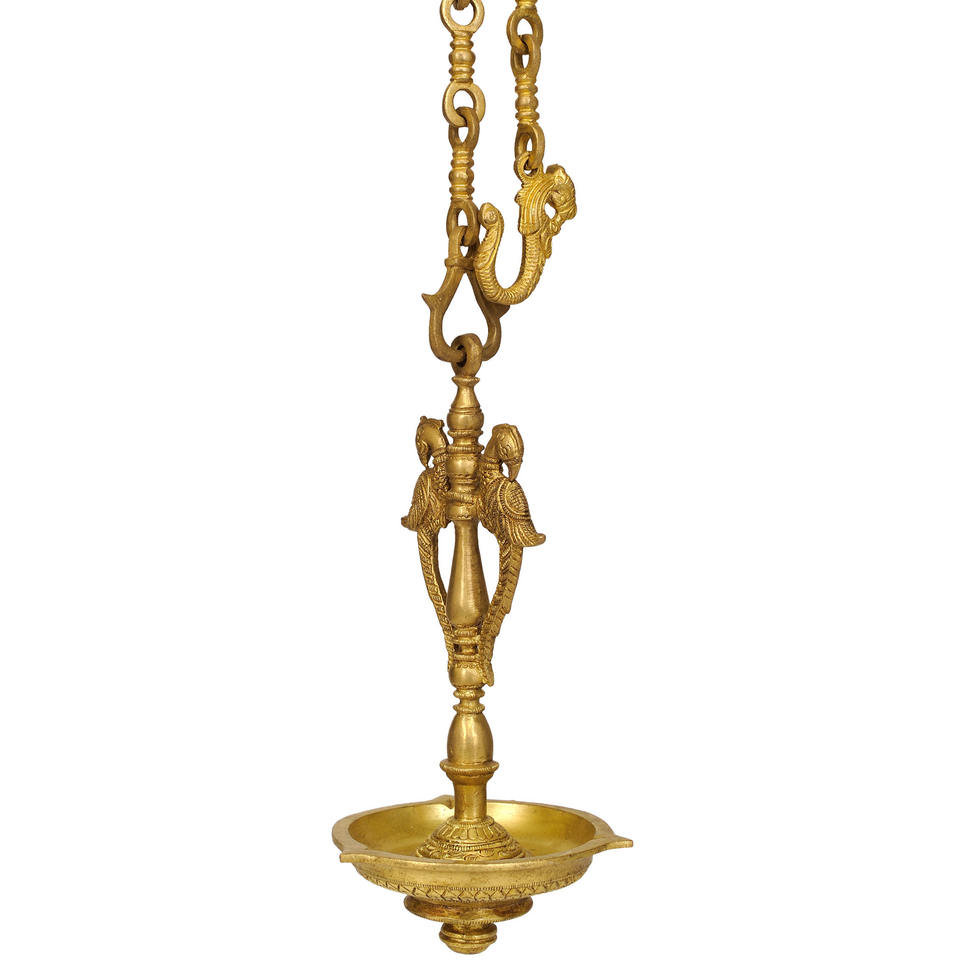 โคมไฟแขวนทองเหลืองคู่นกยูง11นิ้วทำด้วยมือของตกแต่งบ้านสินค้าของขวัญ