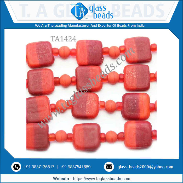 ลูกปัดแก้วทรงสี่เหลี่ยมแบบอินเดียผสมสีแดงขนาด13มม. งานแฮนด์เมดสำหรับทำเครื่องประดับโคมไฟคริสตัลและลูกปัดแก้ว